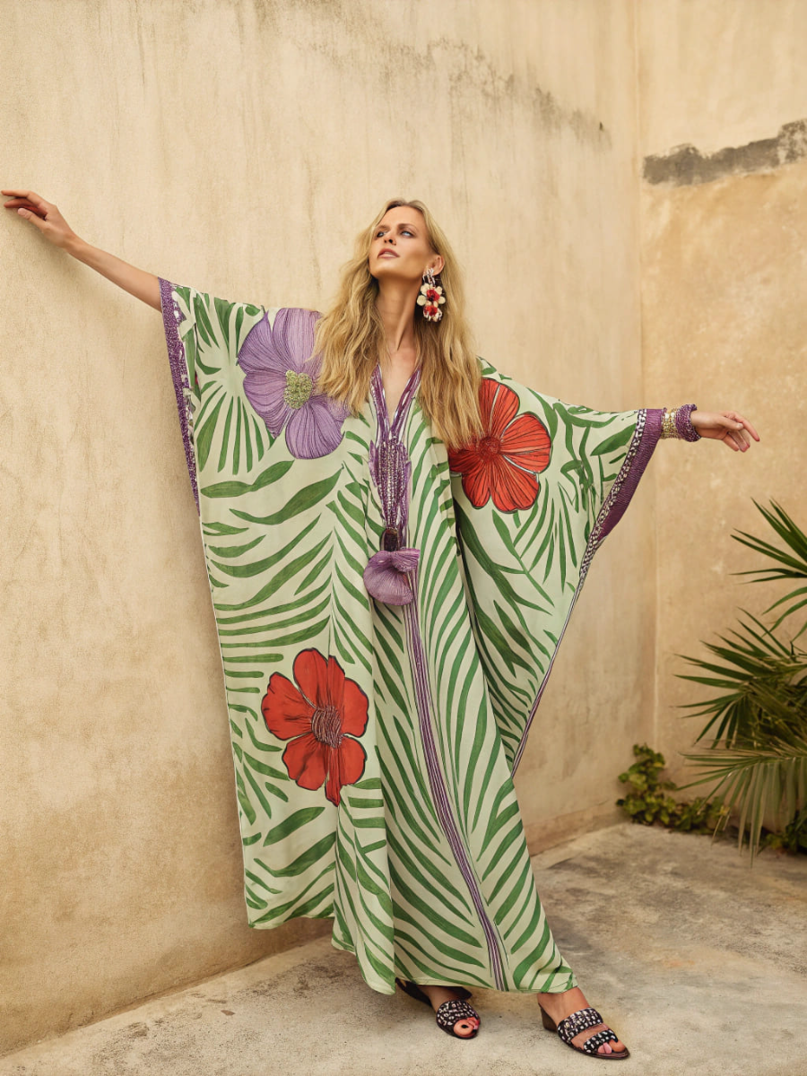 Linen Long Sleeve Vintage Floral Kaftan