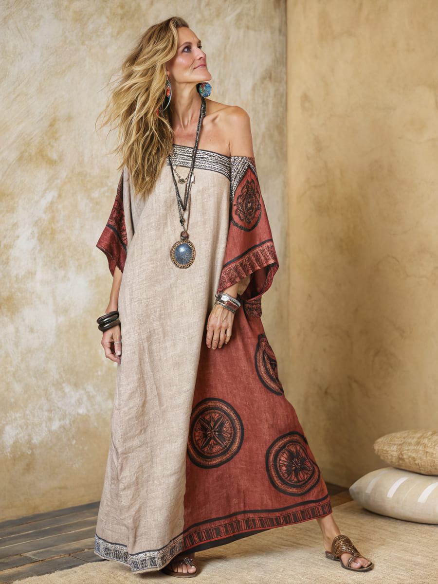 Women's cotton and linen one shoulder long skirt