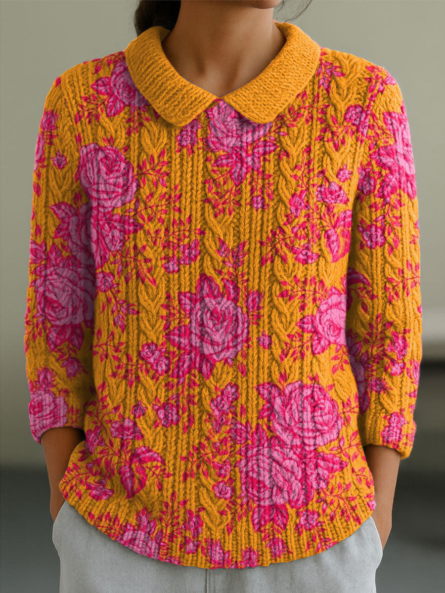 Style: Casual Fit Type:Fit Shirt Length: Over Hip Sleeves Length: 3/4 sleeve Collar: Peter Pan Collar Material: MixCotton Material Stretch: Middle Stretch Pattern Type: Weight: 0.300kg Package: 1 x Sweater