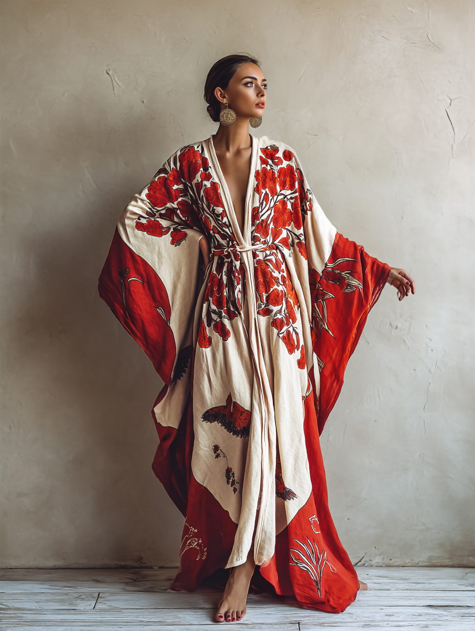 Experiencetimelesscomfortandrefinedelegancewithourpremiumwomen'skimonorobes,madefromaluxuriousblendofcottonandlinen. Perfect for relaxing or acasual outing,this robe combines relaxed style with superior comfort.Premium fabric:Made from abreathable blend of cotton and linen,it'slightweight,soft,and perfect for all-day wear.