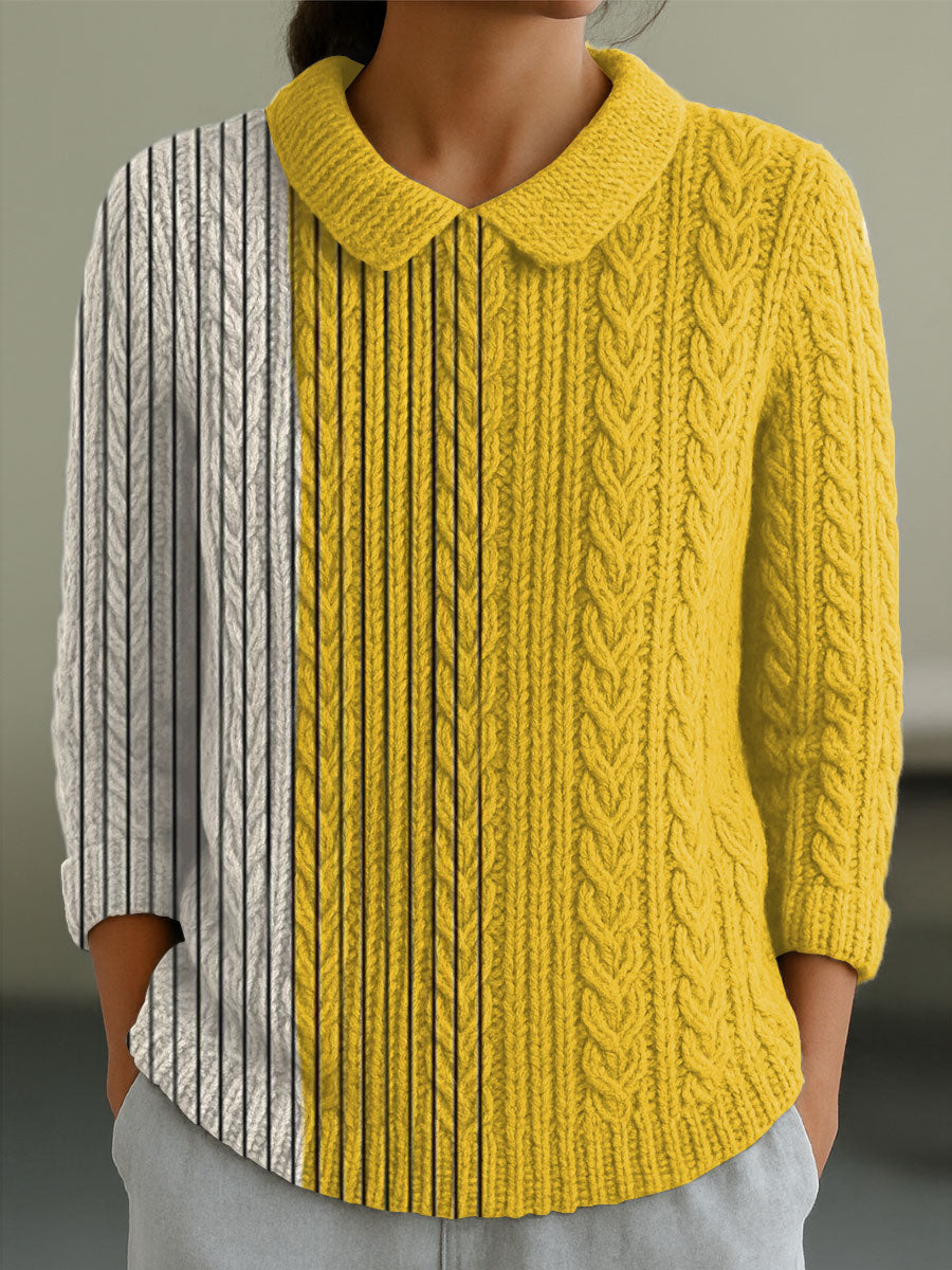 Style: Casual Fit Type:Fit Shirt Length: Over Hip Sleeves Length: 3/4 sleeve Collar: Peter Pan Collar Material: MixCotton Material Stretch: Middle Stretch Pattern Type: Weight: 0.300kg Package: 1 x Sweater