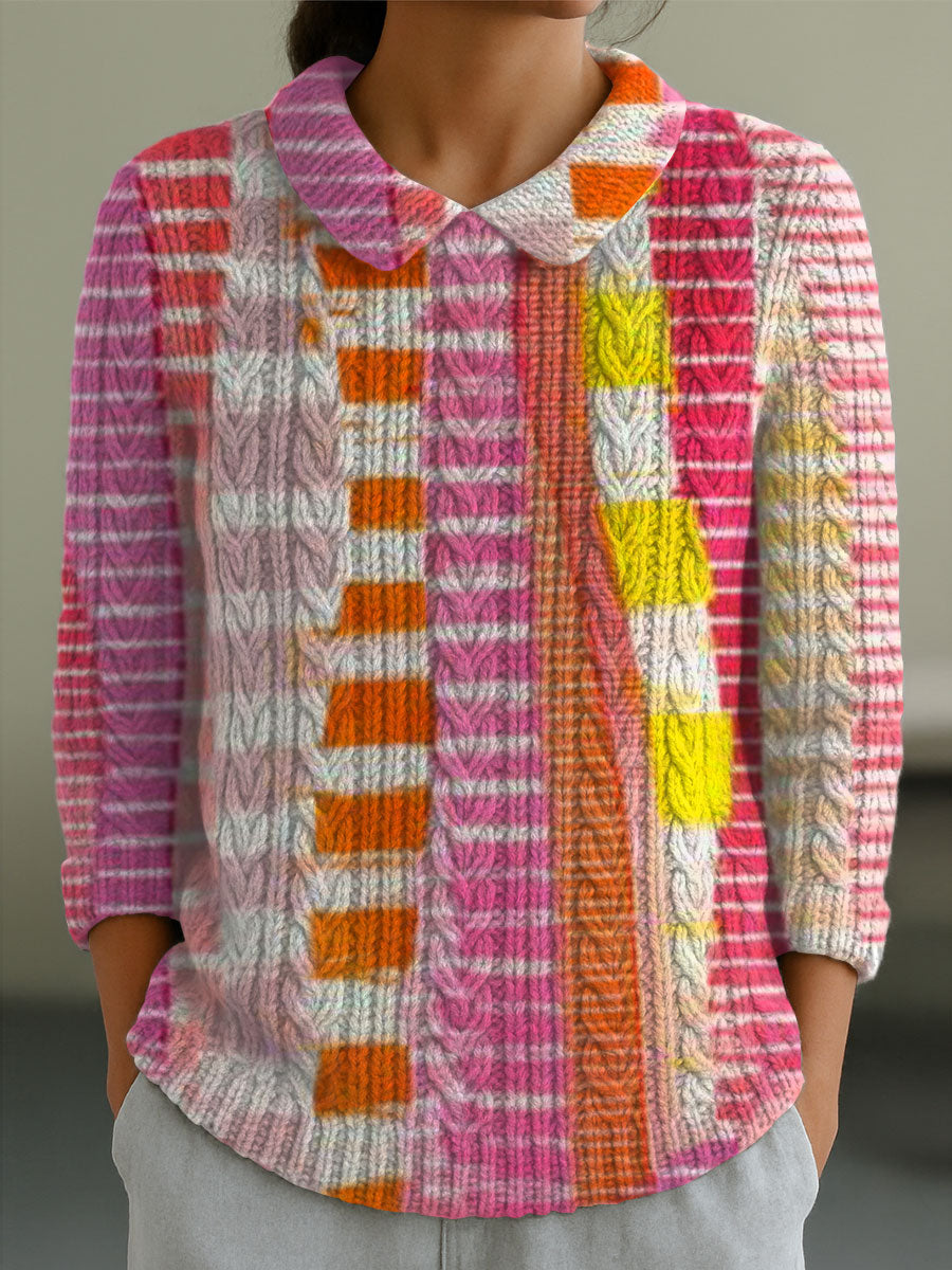Style: Casual Fit Type:Fit Shirt Length: Over Hip Sleeves Length: 3/4 sleeve Collar: Peter Pan Collar Material: MixCotton Material Stretch: Middle Stretch Pattern Type: Weight: 0.300kg Package: 1 x Sweater